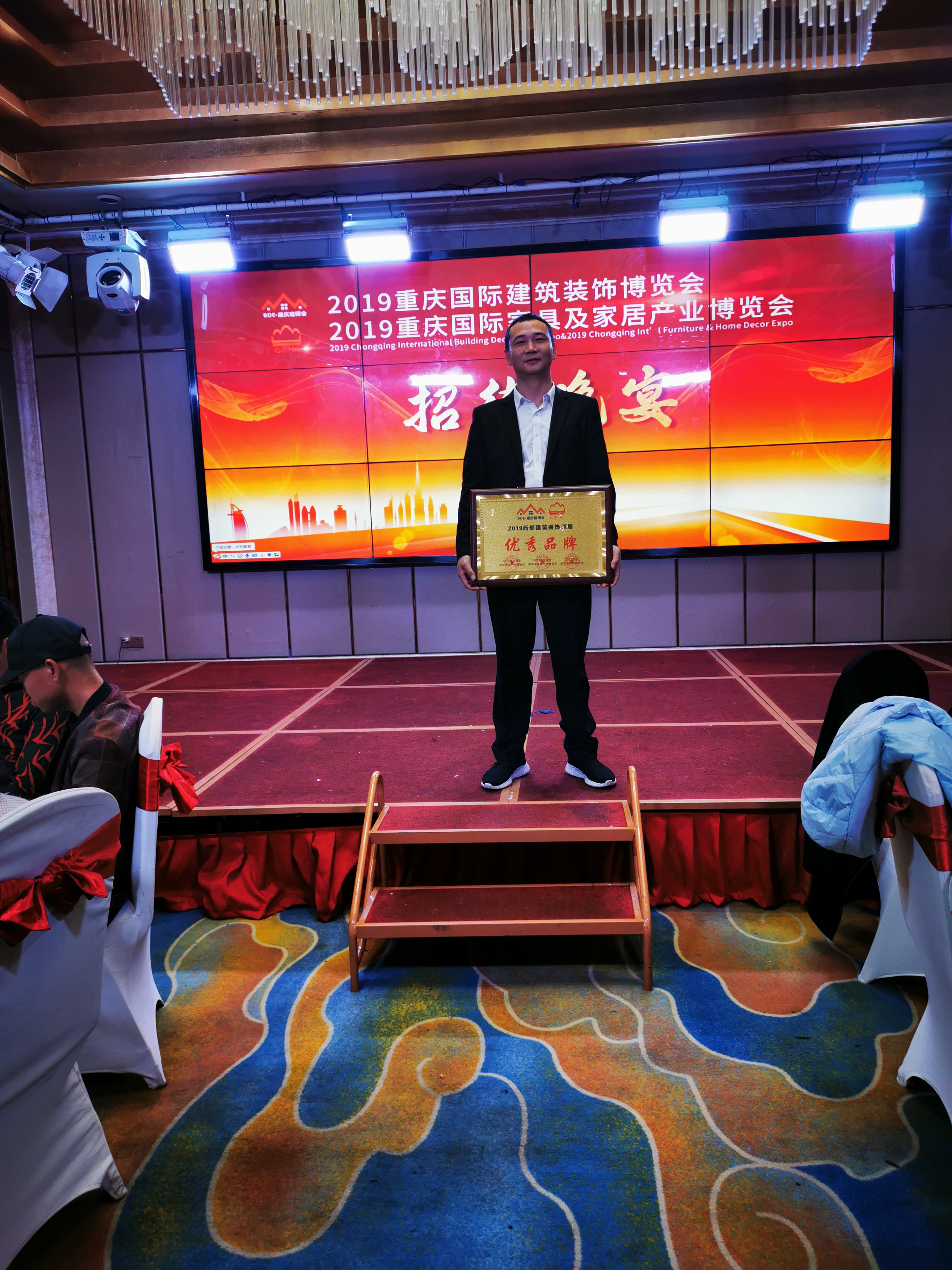 瀏陽市美森木業(yè)有限公司總經(jīng)理黃宏漢同志代表公司參加在重慶舉辦的西部國際建博會并上臺領(lǐng)取巜優(yōu)秀品牌》獎